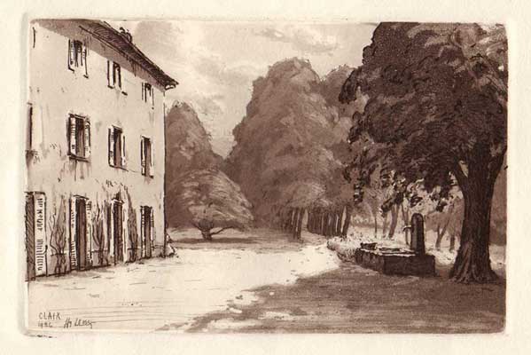 La Maison des champs, Eau forte de Joanny DREVET, graveur, particulièrement connu et apprécié dans les Alpes pour les nombreuses illustrations qu’il a réalisées. (Gravure dénichée par Gilles Baguet).