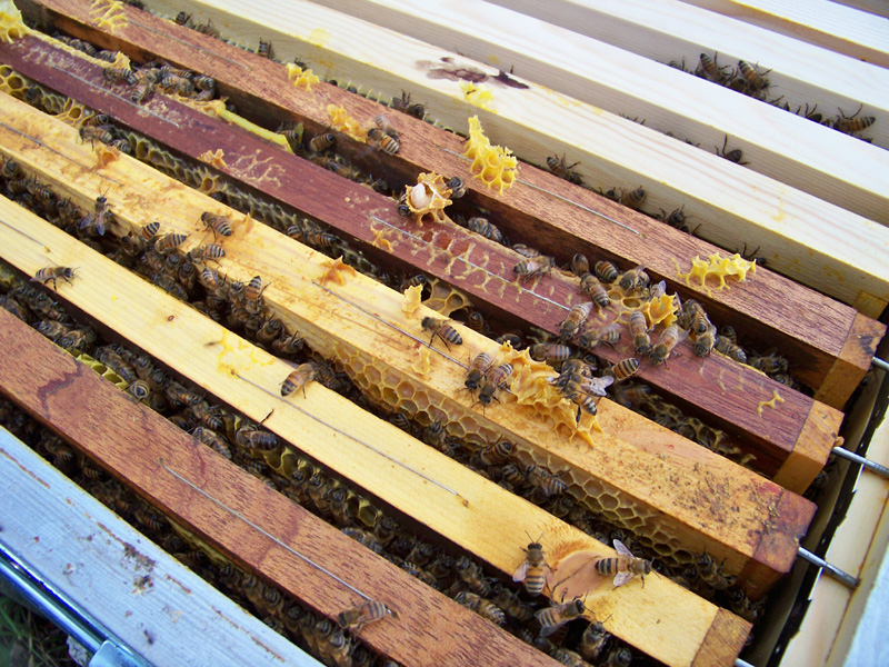 Pour assurer un bon développement de ces essaims ils ont installé dans chaque ruche un nourrisseur rempli de sirop de sucre. La suite dans quelques semaines...