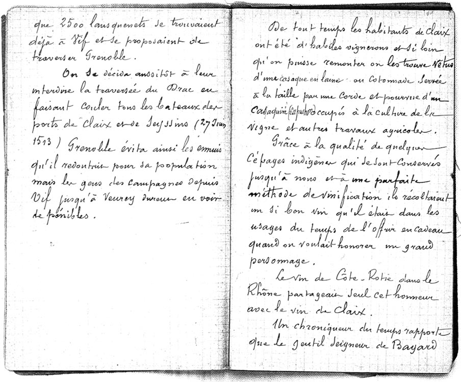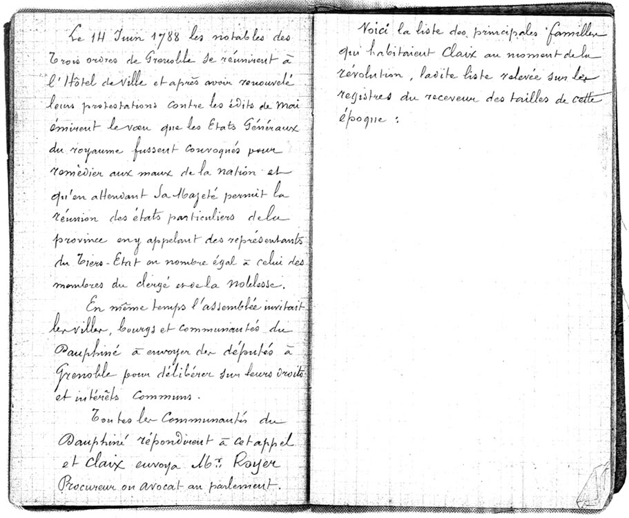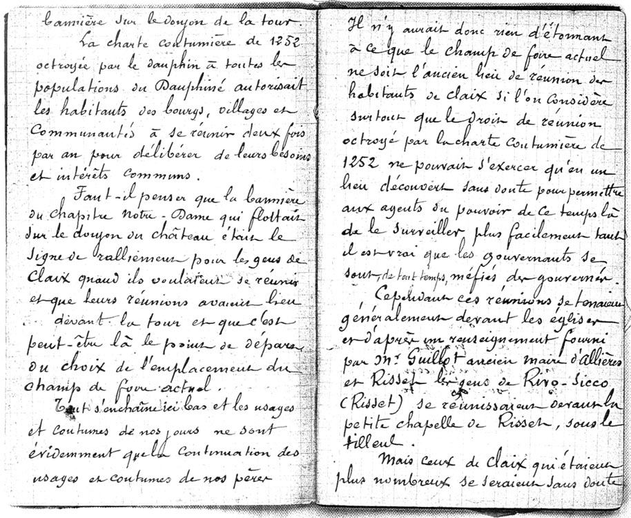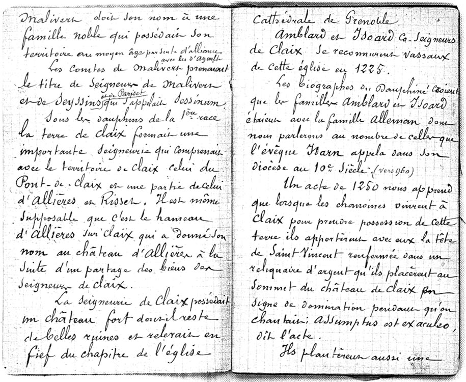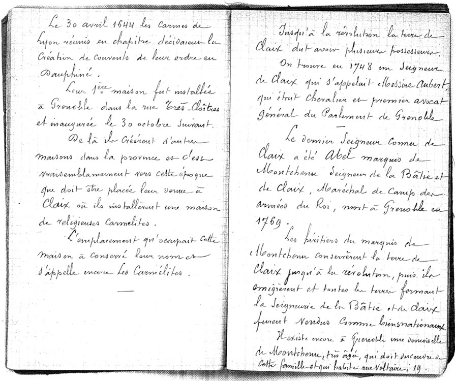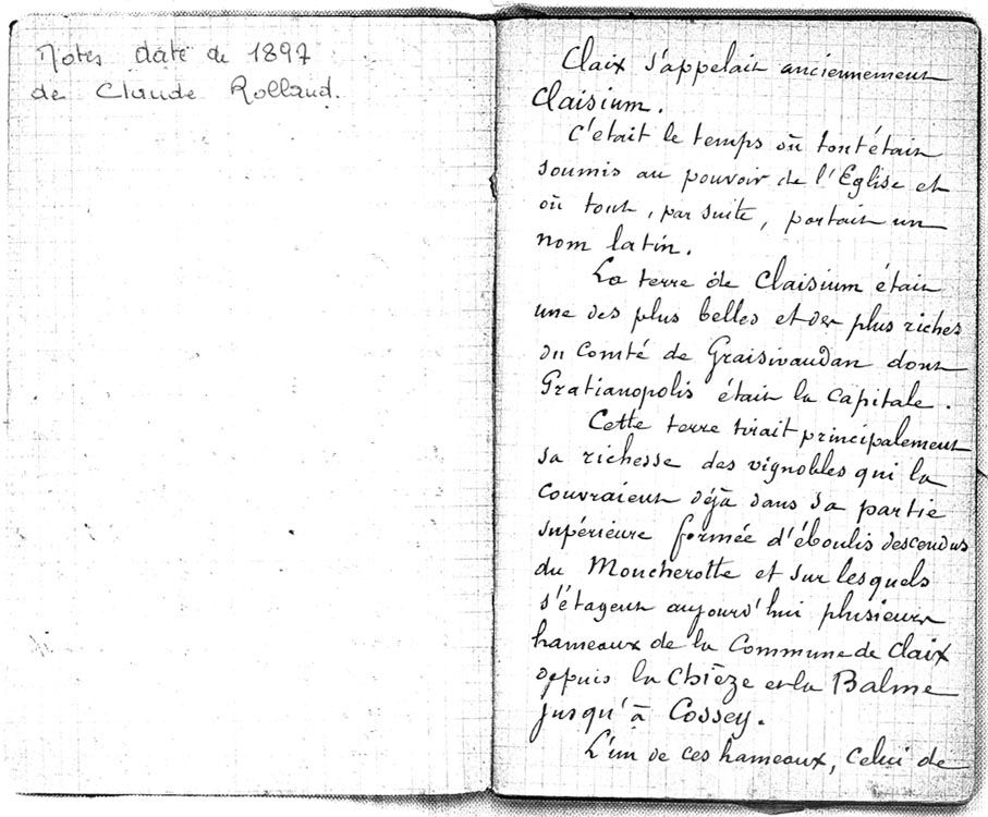 Avant propos : je voudrai remercier ici Madame Guintrandy, petite fille de Claude Rolland, grâce à qui ces quelques pages ont pu être mises en ligne pour le plus grand bonheur de ceux que l’histoire de Claix intéresse.
