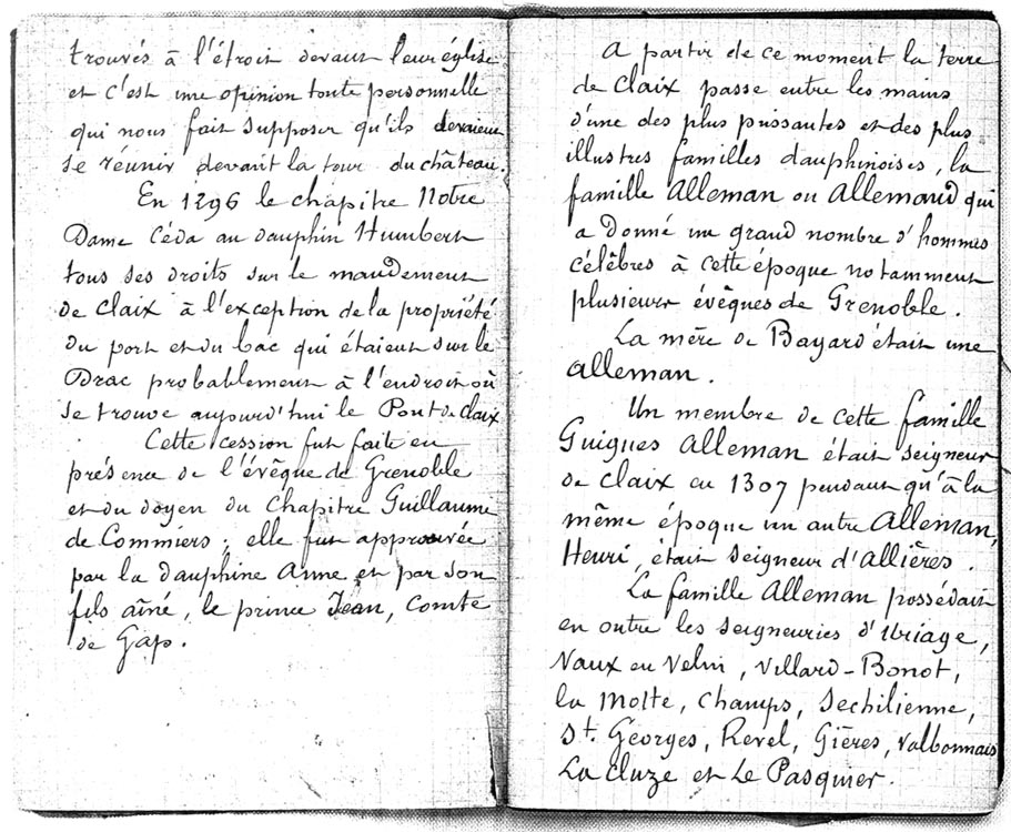 Je les publie sur ce blog pour vous permettre de découvrir une autre histoire de Claix, plus courte et probablement moins précise que celle des 2 ouvrages qui font référence sur le sujet.
